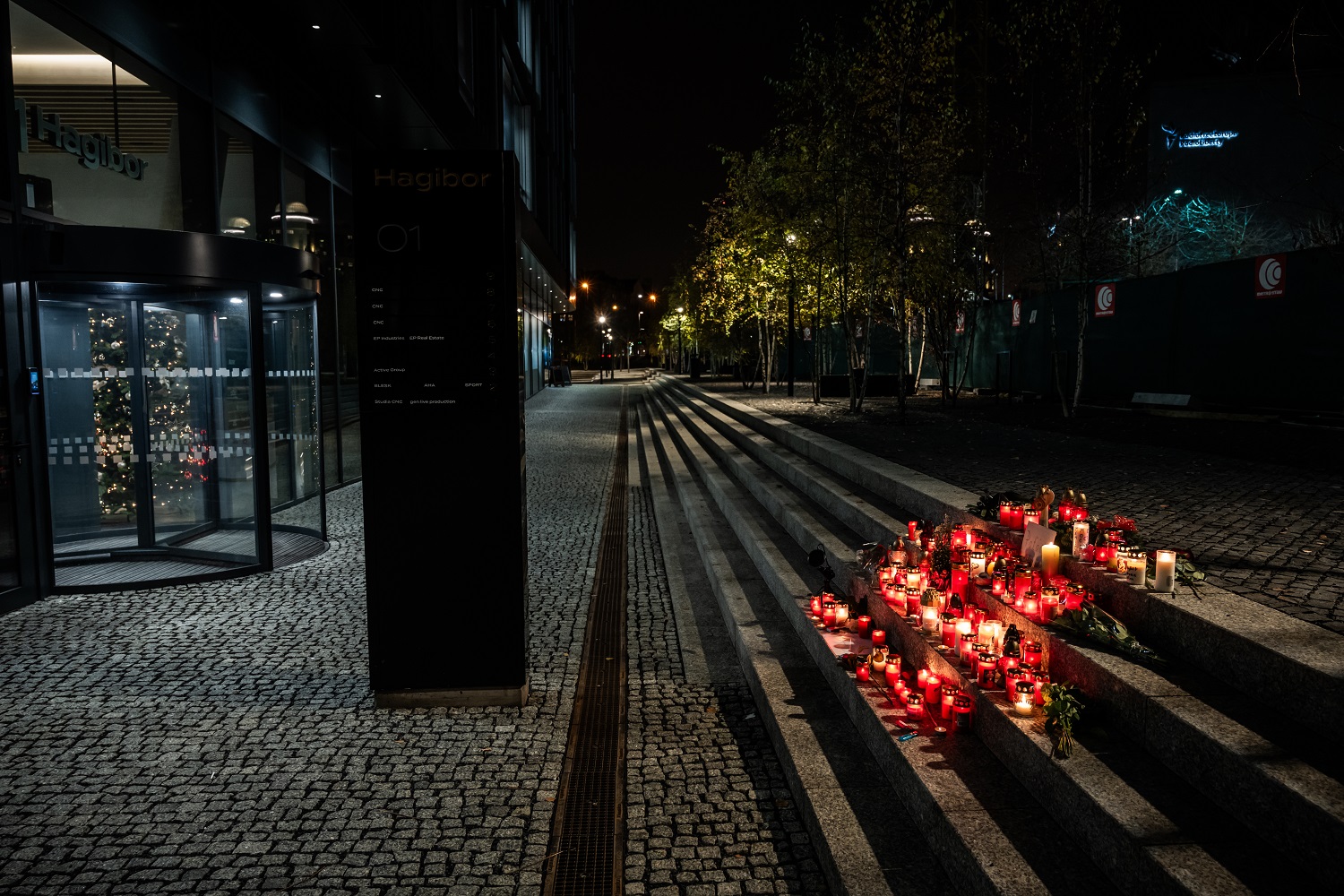 Pietní místo pro Patrika Hezuckého před budovou Evropy 2 Zvětšit fotografii