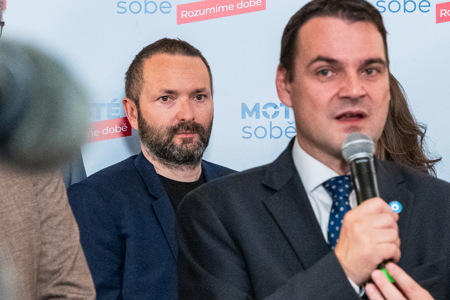 OBRAZEM: Lídři Spolu po tiskovce urychleně zmizeli