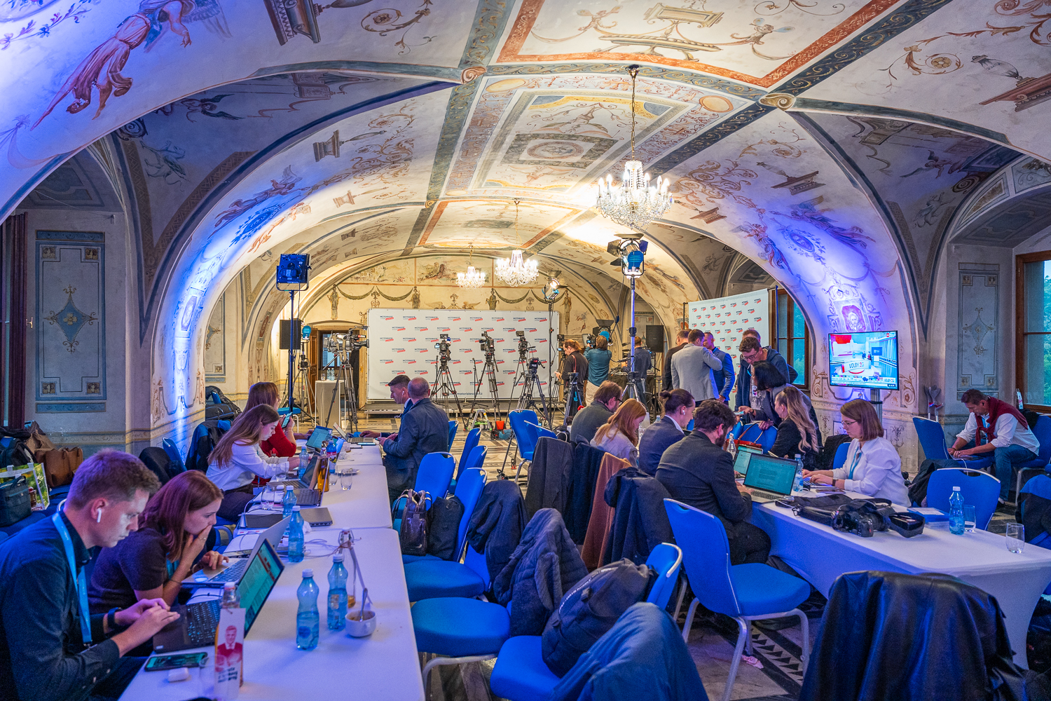 OBRAZEM: Lídři Spolu po tiskovce urychleně zmizeli