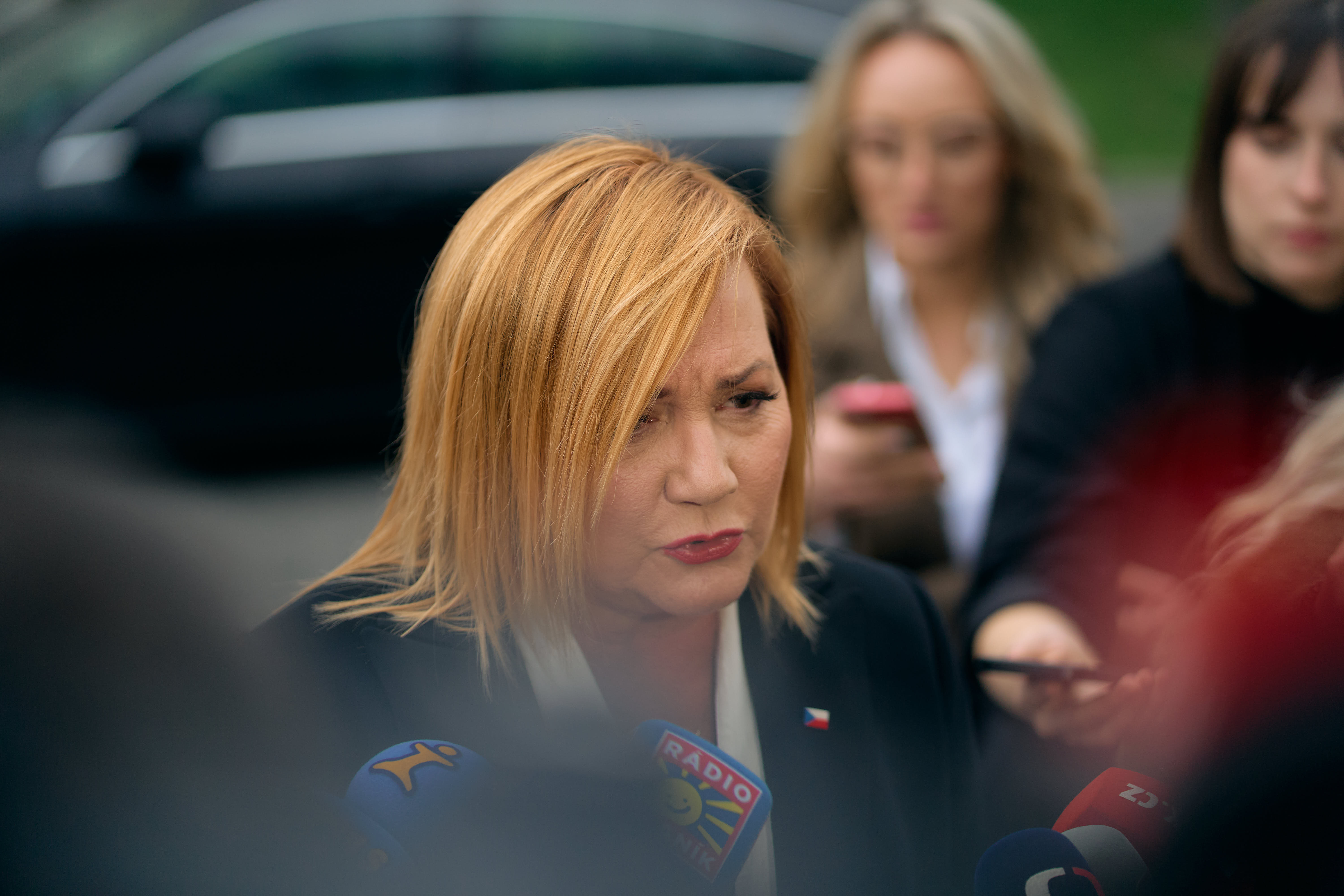 OBRAZEM: Lídři Spolu po tiskovce urychleně zmizeli