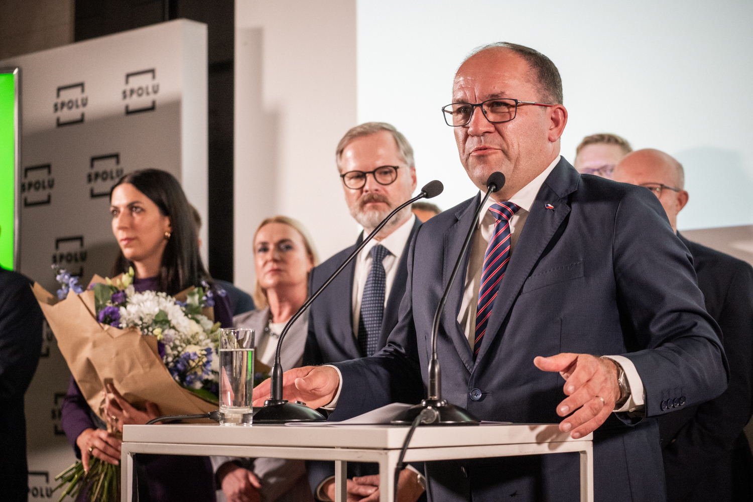 Galerie | OBRAZEM: Lídři Spolu po tiskovce urychleně zmizeli