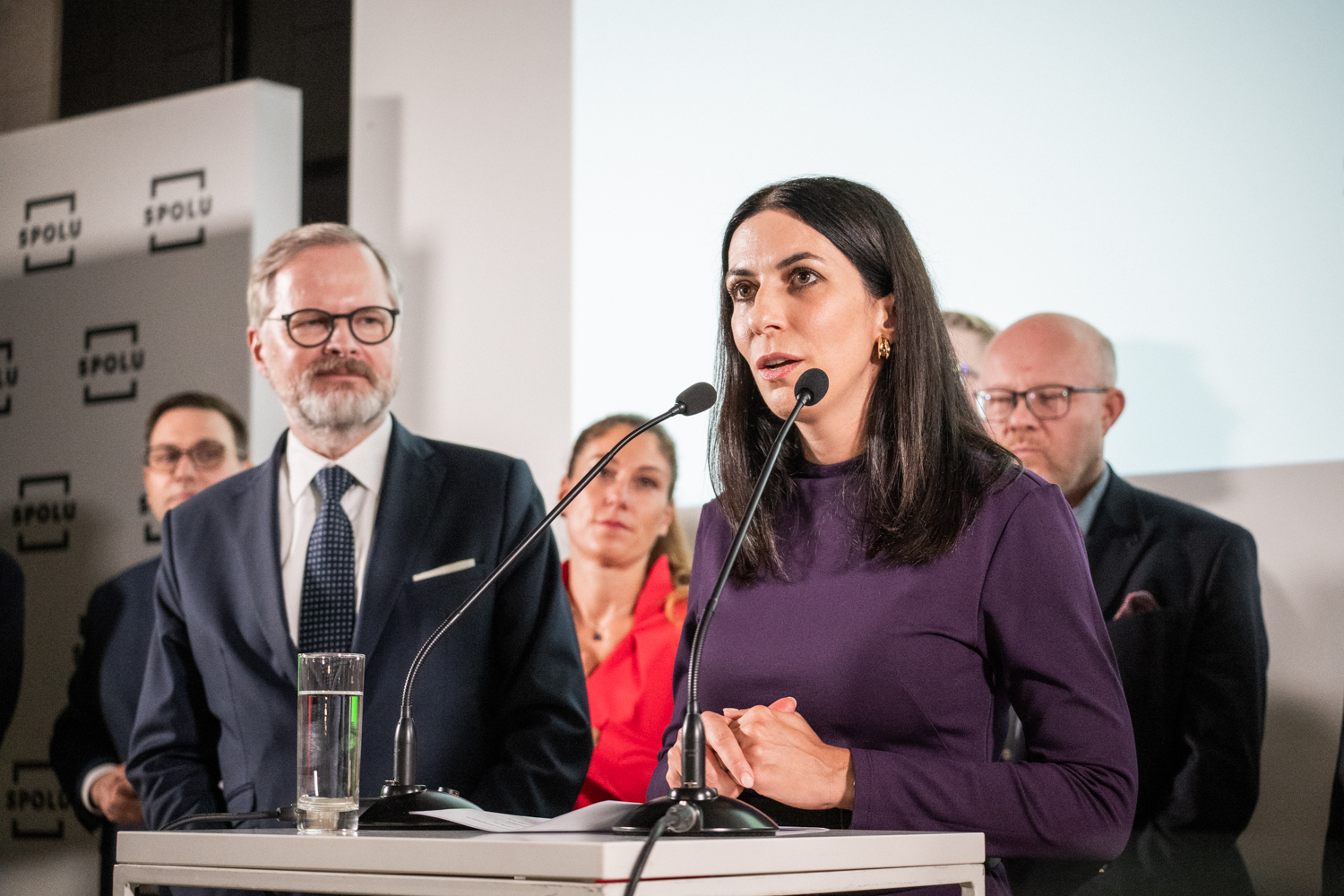Galerie | OBRAZEM: Lídři Spolu po tiskovce urychleně zmizeli