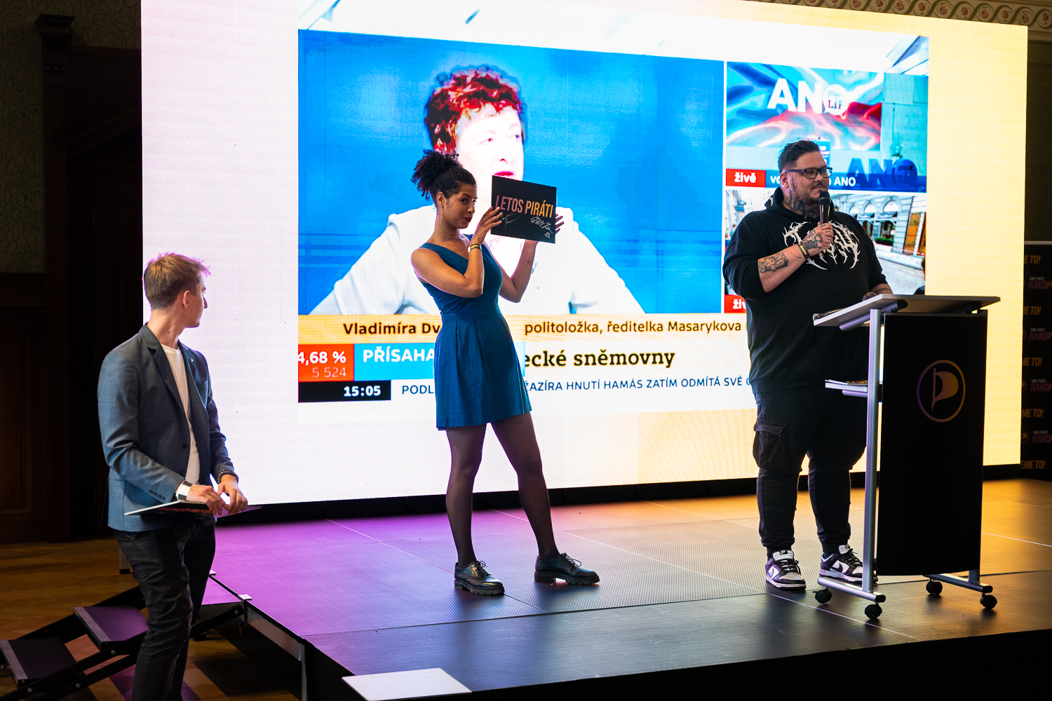 Galerie | OBRAZEM: Piráti oslavují. Porazili SPD, komunisté se nedostanou do Sněmovny | EXTRASIMO.cz