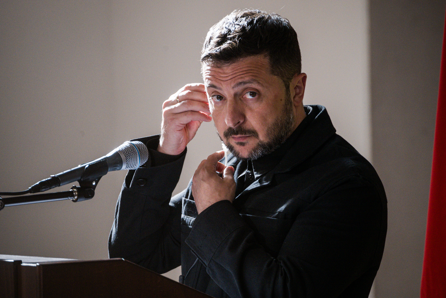 Volodymyr Zelenskyj na tiskové konferenci Zvětšit fotografii