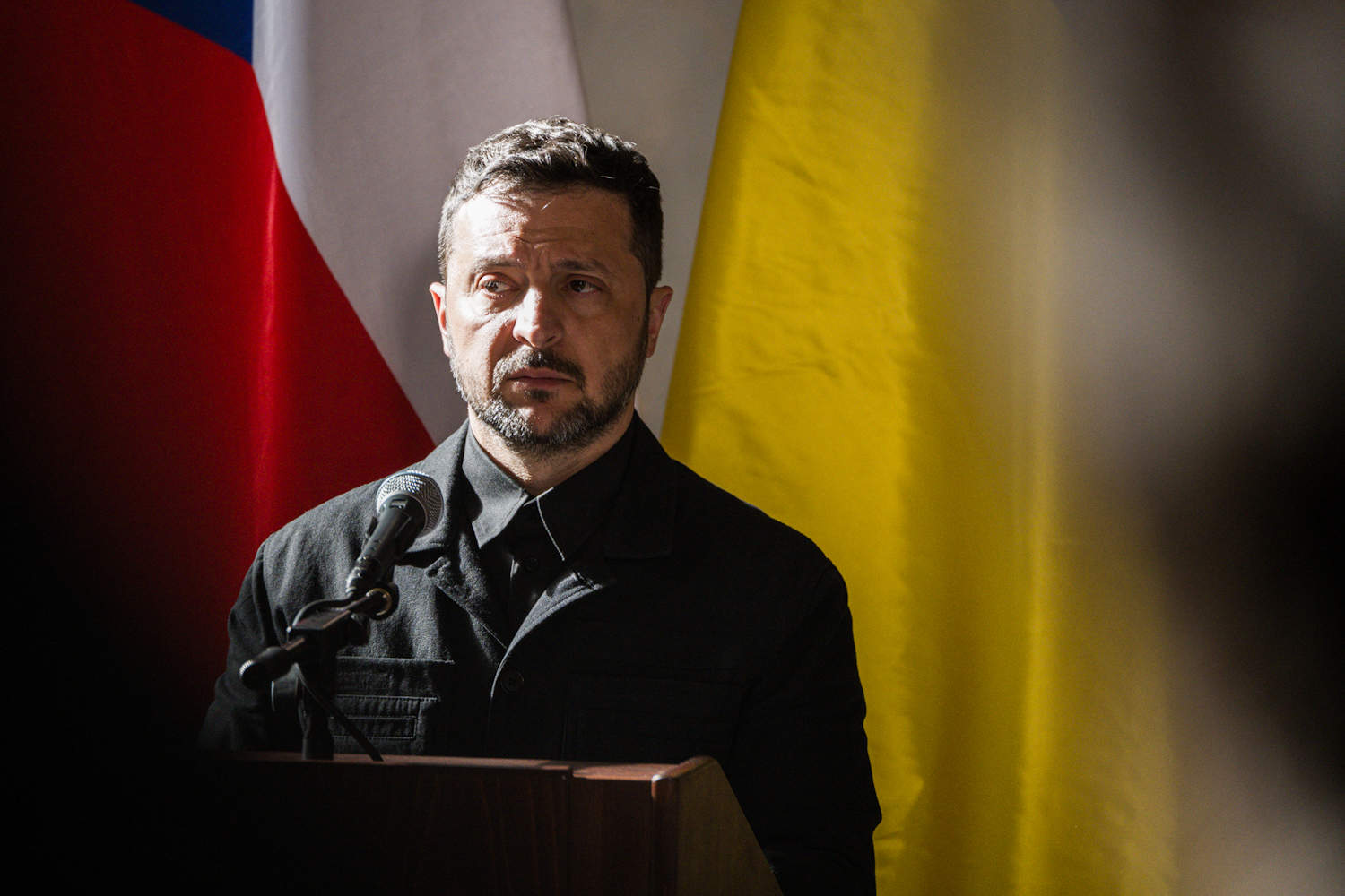 Volodymyr Zelenskyj na tiskové konferenci Zvětšit fotografii