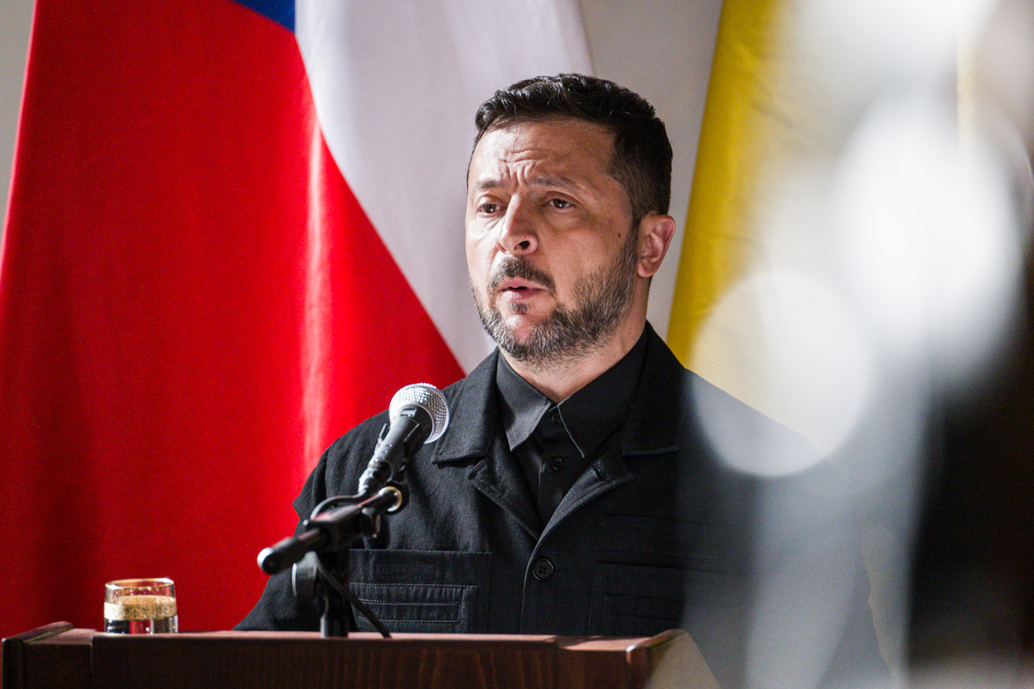 Volodymyr Zelenskyj na tiskové konferenci Zvětšit fotografii