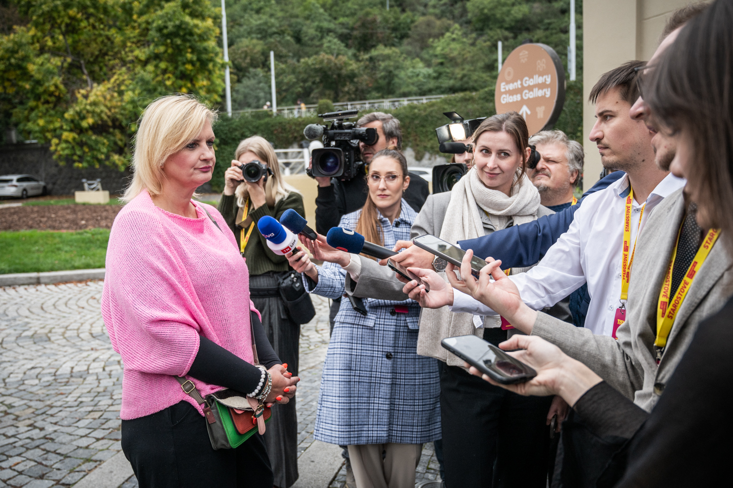OBRAZEM: Lídři Spolu po tiskovce urychleně zmizeli