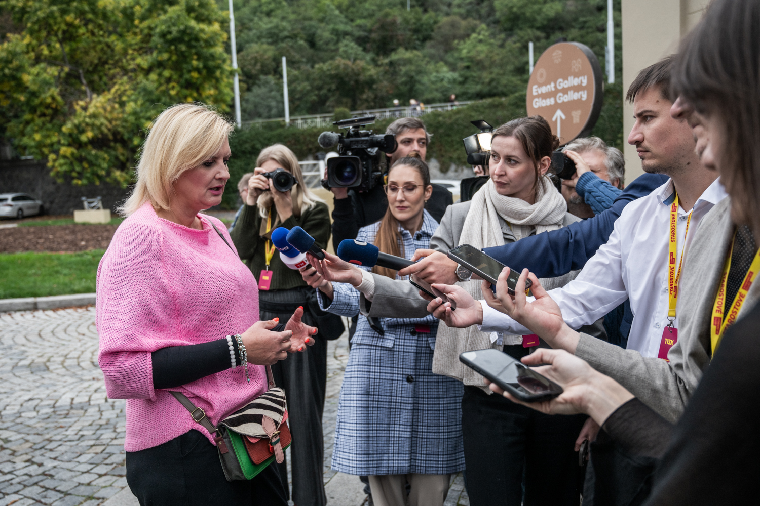 OBRAZEM: Lídři Spolu po tiskovce urychleně zmizeli