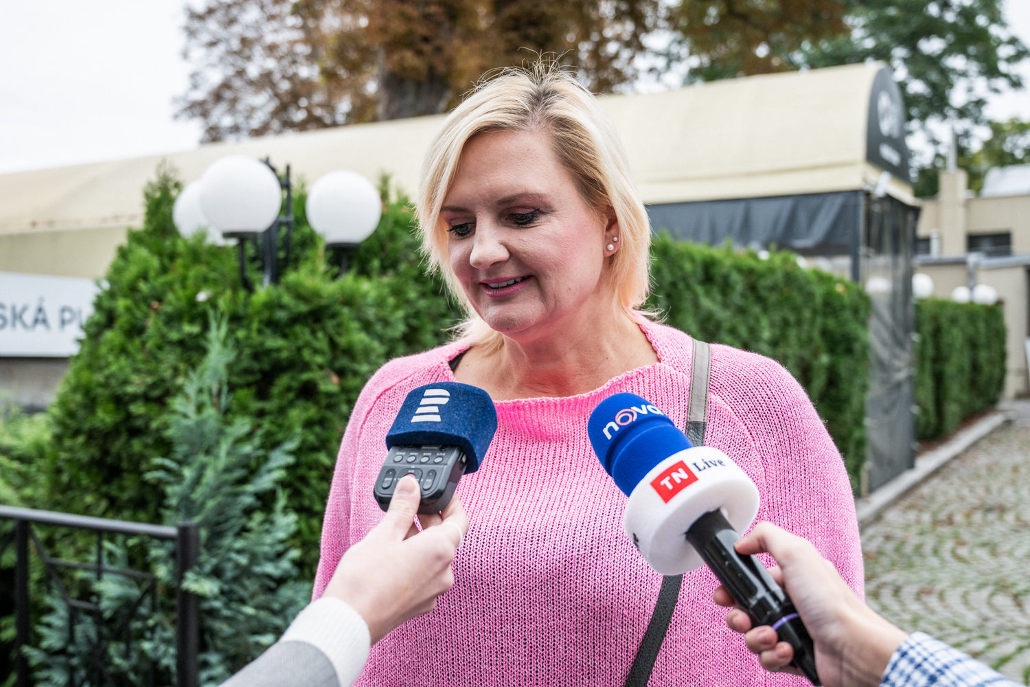 OBRAZEM: Lídři Spolu po tiskovce urychleně zmizeli