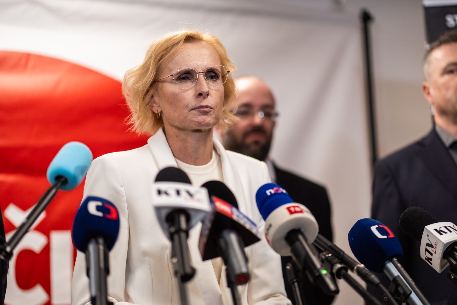 OBRAZEM: Lídři Spolu po tiskovce urychleně zmizeli